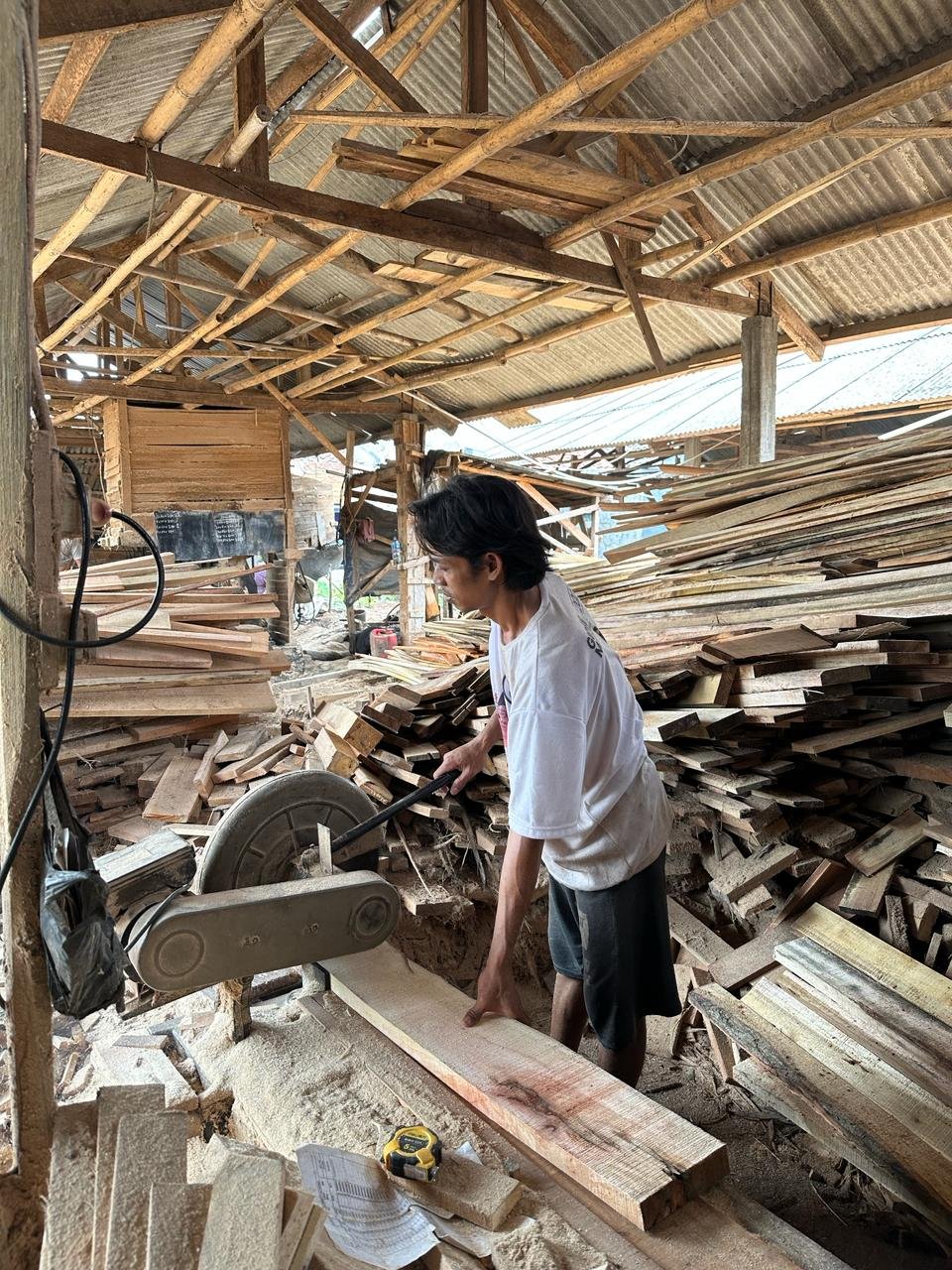 Proses pemotongan kayu sebelum menjadi packing box